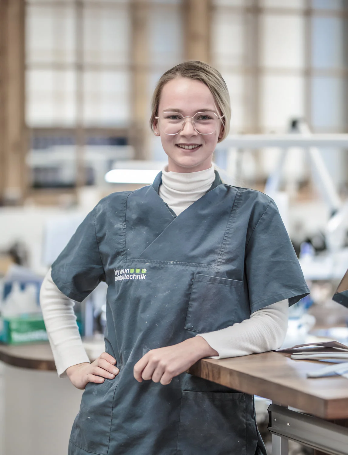 Nach meinem Praktikum bei Krywun Dentaltechnik war für mich klar: Ich möchte Zahntechnikerin werden! Bei uns kümmert sich unser Chef um die Azubis, das ist bei meinen Klassenkameraden in der Berufsschule nicht immer der Fall.