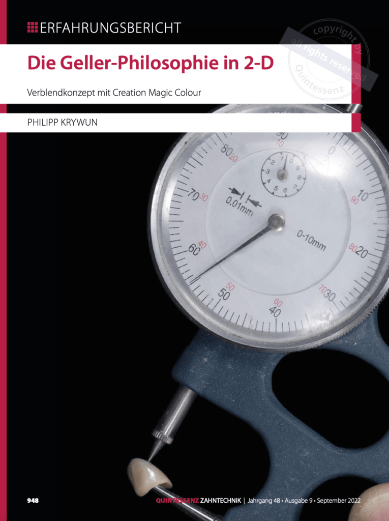 Mit den digitalen Technologien und modernen Werkstoffen haben sich in der Zahntechnik in den vergangenen Jahren auch die Anforderungen an die Weiterverarbeitung der Restaurationen geändert. Moderne Malfarben- und Mikrolayering-Systeme spielen zunehmend eine Rolle. Mit Magic Colour schließt die Fa. Creation Willi Geller (Meiningen, Österreich) die Lücke zwischen Verblenden und dem oberflächlichen Bemalen keramischer Restaurationen; das Material kann dem Autor zufolge eine echte Alternative zur Vollverblendung sein.